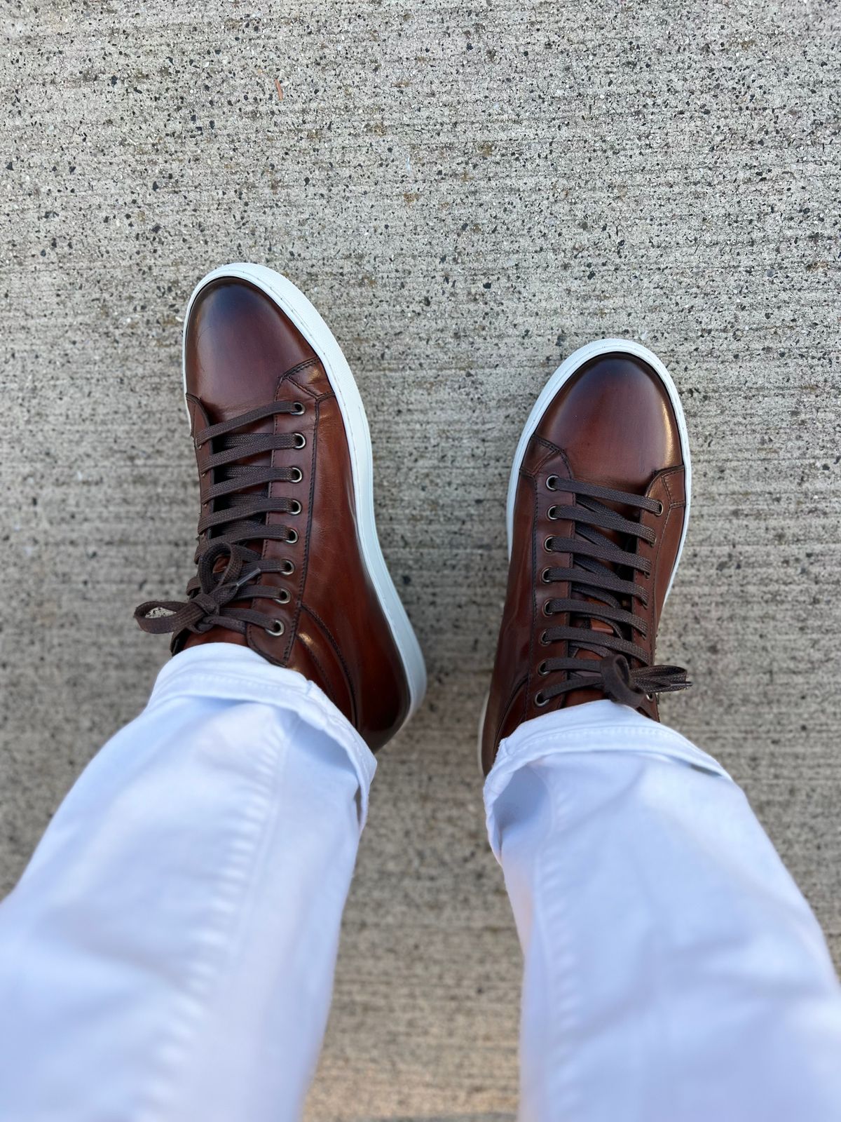 Sneaker heads rejoice. Our mid-top sneaker is made from the finest Italian calfskin leather with extra padding for exceptional comfort.