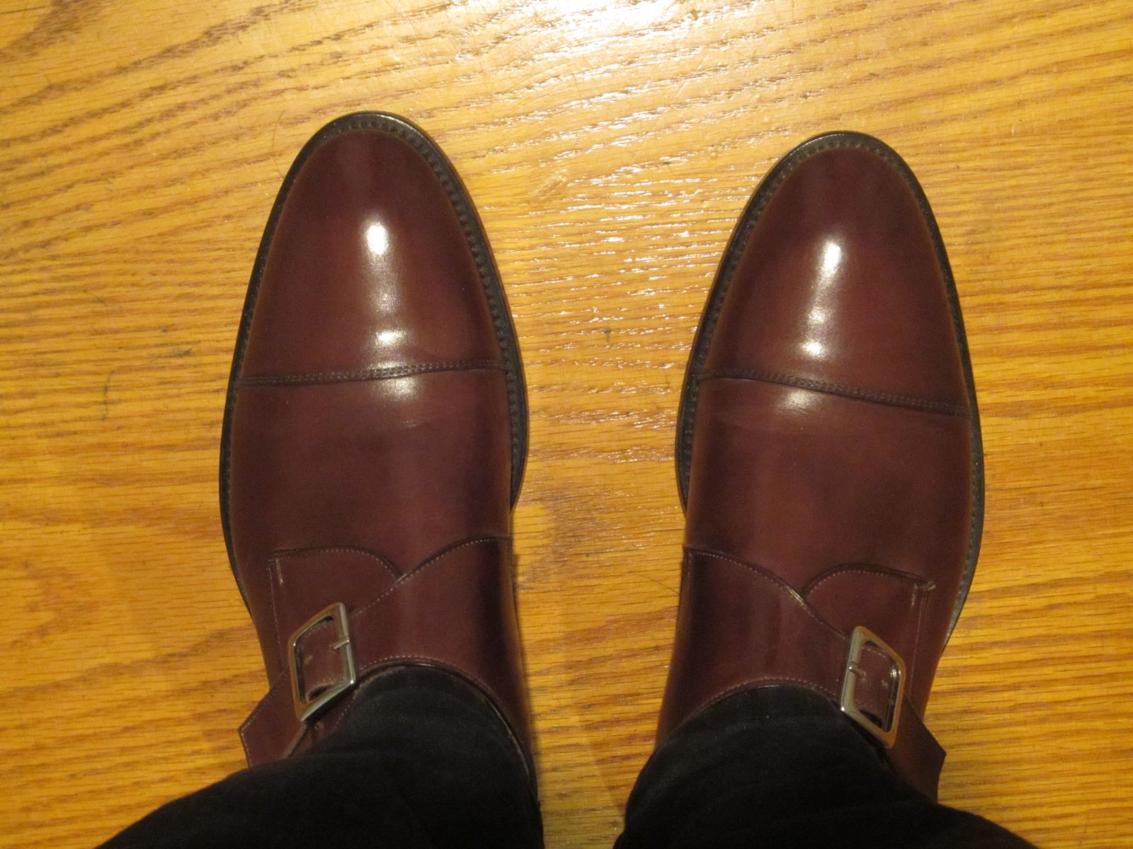 Superb. The hand painting adds a noticeably rich hue. I've attached photos taken in natural and artificial light, with and without flash, to show appearance in different environments. My one grouse is that I’d hoped for a darker burnish on the toe box, like the shoes in the photos on the company website. Given the hand staining, I assume no two pairs are identical, so coloration may be luck of the draw.